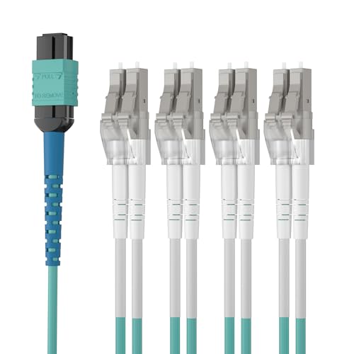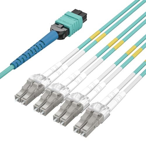 10Gtek Fiber Optic Cable Patch Cord, MPO to 8x LC Fanout Fiber Jumper Cable, OM3 MMF 8-Core Fiber, Application for QSFP+Transceiver, 1m/3.3ft, Breakout 0.5m