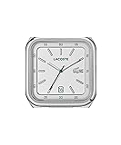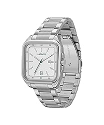 - The Lacoste.12.12 Up reimagines the iconic watch with a sleek rectangular case, polished bezel, and link bracelet. Features a petit piqué reflector ring, satin-finish dial, and signature crocodile at 3 o’clock, blending timeless style and refinement.