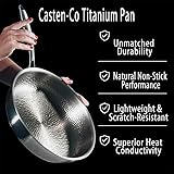 【Unmatched Durability】Casten & Co Titanium Pans are built to last with a robust construction that resists bending, rusting and breaking. Crafted for daily use, these pans are designed for superior longevity and performance 【Natural Non-Stick Performance】The Pure Titanium Pan in the Casten Titanium collection boasts a unique hammered surface that provides a non-stick finish without any chemical coatings. Enjoy hassle-free cleaning and healthy cooking every time 【Lightweight & Scratch-Resistant】At 30% lighter than traditional stainless steel pans, Wok Pan Flat Bottomed offer a perfect balance of weight and durability. Their scratch-resistant design ensures your pan looks great and performs flawlessly for years 【Superior Heat Conductivity】With its innovative hammered structure, Casten Titanium cookware heats up 50% faster than standard pans. This feature eliminates hot spots and ensures even cooking, whether you're frying sautéing, or searing 【Compatible with All Cooktops】Casten Titanium Pans work seamlessly on all cooktops, including gas, electric, and induction. Titanium skillet makes them versatile and perfect for all your cooking needs
