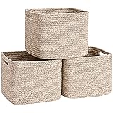 9 Inch Storage Cubes: 3-Pack cotton rope storage bins with perfect size and 9.5L capacity. Storage baskets are ideal for categorizing and storing toys, clothes, towels, baby diapers, snacks, fruit, and most other household items. Reinforced Handles: The woven basket handles are double-stitched for long-lasting durability, making lifting, organizing, and moving effortless. Shelf baskets will enhance any room or decor and bring tidiness to your home. Stylish Decorative Baskets: Cube organizers with neutral design are ideal for the living room, bedroom, bathroom, nursery—it fits perfectly in closet, shelve, drawer. Small basket is suitable as gift basket, for example, as a gift for newborn baby or baby shower. Safe Natural Cotton: Made of high-quality organic cotton rope, storage bins are soft and durable. Cube storage organizers are odor-free, chemical-free, and designed to be safe for children, the elderly, and pets. Easy Shaping: Square storage basket is foldable but has stiff shape, making it convenient to store when not in use. After receiving the package, fill it with towels or blankets and it will quickly return to its elegant shape.