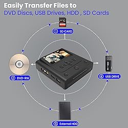 Preserve Family Memories Before They Fade. Old VHS tapes and camcorder footage don’t last forever. This standalone recorder helps you safely archive weddings, birthdays, and home videos by recording them to DVD or saving digital backups to USB/SD—no computer required. True Standalone Recording—No PC, No Software. Skip drivers and complicated capture setups. Just connect your VCR or camcorder, preview on the built-in 4.3" screen, and press REC. What you see is what you record—simple enough for parents and grandparents. HDMI + AV Inputs for Classic & Modern Sources. Record from VHS/VCR/Hi8/camcorders via AV (RCA), or capture video from HDMI output devices through HDMI input. Use HDMI output to play recordings on your TV with a stable, clear picture. Smartphone App Copy—Make DVDs from Your Phone. Most recorders can’t do this. With the free “Friendly Memory” app (iOS/Android), you can copy photos and videos from your smartphone directly to USB/SD/DVD—perfect for making memory DVDs for parents or backing up important clips. Important Notes to Avoid Returns (Please Read). This unit plays back recorded files and discs, but it does NOT play VHS tapes directly—an external VCR is required for VHS conversion. Recording is real-time like traditional DVD recorders. Blank discs and USB/SD storage are not included.