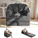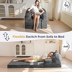 MAXYOYO Folding Sofa Bed with Backrest, Boneless Fold Out Couch Bed with Handle, 2 in 1 Convertible Bean Bag Chair to Floor Sofa Lounger, Comfy Folding Couch for Bedroom & Living Room, Dark Grey