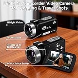 - 【56MP 4K Ultra HD & 18X Digital Zoom】This camcorder captures smooth, high-resolution 4K Ultra HD videos that keep every frame sharp and true to life, and 56.0-megapixel photos that show fine textures, bright colors and small details clearly. The video camcorder paired with an F/2.0 large aperture for sharp details and vivid colors. 18X digital zoom lets you easily focus on distant subjects, making this digital camcorder perfect for daily life, travel, or short video creation. 【3.0-Inch 270°Rotatable Touchscreen】Featuring a 3.0-inch touchscreen with 270° free rotation, this camcorder offers flexible framing for selfies, low-angle shots, and group photos. The intuitive touch control design makes operation simple, allowing vloggers and beginners to master this 4k camcorder video camera quickly. No more awkward button fumbling—just tap, rotate, and shoot seamlessly with this user-friendly video camera. 【IR Night Vision & Multi-Shooting Modes】Press the “OK” button to activate the infrared filter. This night vision camcorder delivers high-contrast black & white video even in total darkness, providing clearer, more detailed footage than standard low-light color mode. It also supports multiple practical modes including slow motion, loop recording, time-lapse, and continuous shooting, meeting diverse creative needs for day and night scenarios. 【WiFi Transfer & Remote Control】Built-in WiFi enables easy connection to your mobile phone for fast file transfer and shooting control. You can instantly transfer all your videos and photos from the digital camcorder to your phone, so you can share your favorite moments with friends or post them on social media anytime, anywhere, without the hassle of using cables or card readers. It comes with a remote control (15m effective range) that supports remote shooting and video recording, offering hands-free convenience for solo creators, group shots, or scenarios where you need to avoid camera shake. 【Webcam for Live Streaming & TV Playback】Connect via USB-C to instantly use this camcorder as a webcam for live streaming or video calls. It also supports HDMI interface for direct TV playback, letting you share wonderful videos with family and friends on the big screen. Whether you’re live streaming on social media or hosting a home movie night, this 4k camcorder adapts to every scene effortlessly, and this digital camcorder’s dual-function design adds extra value for daily use. 【Complete Accessories & All-Round Service】Comes with all essential accessories: 4k camcorder host, battery, camera bag, cables, remote control, lens cover, and 64GB memory card. User-friendly and easy to operate, this camcorder video camera is ideal for beginners. What’s more, its sleek and compact look makes it a thoughtful gift for friends, family, or photography enthusiasts on birthdays, holidays, or graduation days. Our 24-hour support team is available to answer any questions about cam corder you may have.