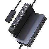 - 12-in-1 Triple Display Surface Pro Dock: Your Ultimate Expansion HubMeet your ultimate expansion solution. This 12-in-1 Surface Dock provides convenient, all-in-one connectivity to transform your Surface laptop or Surface Pro into a powerful desktop workstation. Enjoy seamless multi-monitor support with HDMI+HDMI+VGA outputs for up to three screens, immersing you in stunning, crystal-clear visuals that boost productivity and elevate your entertainment experience.Surface Pro Triple Display Docking Station – Supports Mirror & Extend ModeUnlock triple the screen real estate and triple your efficiency. This Surface Pro docking station supports flexible Mirror and Extend modes, allowing you to customize your workflow. When outputting to three displays simultaneously, both HDMI ports support stunning 4K resolution up to 3840 x [email protected] 72W Power SupplyKeep your device powered throughout the day. Charge your Surface device with a reliable 72W power supply, ensuring consistent performance for work or play. A white LED indicates stable power input, while a green LED confirms a successful connection to your Surface, giving you peace of mind during use.Wide CompatibilityThis Surface docking station is designed for broad compatibility, serving as a versatile docking station for Microsoft Surface models including:Surface Pro 11/10/9/8/X/7+/7/6/5/4/3Surface Laptop 7/6/5/4/3/2/1Surface Laptop Studio 2/1Surface Laptop Go 3/2/1Surface Go 4/3/2/1Surface Book 3/2/1Stable Wired Network & Clear 3.5mm Audio OutputEnjoy a faster, more stable connection. The integrated 100Mbps RJ45 Ethernet port provides superior speed and reliability compared to most wireless connections, minimizing latency for smooth streaming, downloading, and video calls. The 3.5mm audio jack allows for simultaneous audio transmission or connection to external speakers, perfect for conference calls or immersive media playback on your Surface Laptop docking station.Super Speed Data Transfer& SD/TF Card ReaderEngineered for speed and versatility. This hub empowers your Surface laptop docking station with rapid 5Gbps data transfer across its 4 USB ports (2x USB-A 3.0, 2x USB-C), keeping your workflow moving. Plus, the dedicated SD/TF card reader (104 MB/s) allows instant access to camera media. Enjoy streamlined efficiency for all your data tasks with this Surface Pro dock.