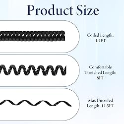 Package Quantity & Uniform Appearance: You’ll get 20 PCS Black Landline Telephone Handset Cord, enough for daily use, office replacements, or sharing with family/colleagues. The sleek black color blends with most home or office decor, keeping the space neat and avoiding visual clutter Exact Length & Flexible Use: Each Phone Handset Cord is approximately 3.5 meters long, with a coiled design for compact storage and stretchability for free movement. This length lets you use the phone comfortably at home or office—no more being restricted by short cords while taking calls, enhancing daily communication convenience Durable Copper & PVC Build: Made of copper (core) and PVC (insulator), the coiled phone wire ensures stable signal transfer for crystal-clear calls without static. PVC is flame-retardant and insulating, boosting safety, while the sturdy material resists wear and tear, supporting long-term use even with frequent stretching Targeted Compatibility & Usage: Equipped with standard RJ9 4P4C connectors, it works with most corded landline phones. The connector features a high-strength spring, ensuring it remains robust and durable even after repeated insertions and removals. NOTE: It’s not compatible with VOIP phones or RJ45 modular plugs, preventing wrong use and ensuring a proper, secure fit Retractable & Anti-Tangling Design: The handset cable cord has good elasticity—stretches easily and retracts quickly after use, reducing tangling. This keeps your desk/space organized and avoids damage from tangled wires, making it ideal for busy home or office communication scenarios