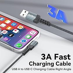 90° Right-Angle Head: Experience the ultimate convenience with our 90 degree right angle usb c cable design. Slides into game controller, furniture/car-console gaps—no kinks, no cable stress 3A Fast Charging & 480 Mbps: The usb to usb c cable 10 feet supports up to 3A fast charging while syncing movies in seconds Device Compatibility: This USB C fast charging cable 10ft is compatible with MacBook Pro/Air, iPod Pro, Galaxy S25/24/23/22/Note, Google Pixel,PS5, Switch, Steam Deck, Meta Quest 3/3S, Wall Chargers, Car Chargers, USB C Charger Block, USB C Security Camera and most USB-C devices Heavy Duty Armor: Nylon Braided + usb c 90 degree right angle adapter reinforced elbow can survives 10 k+ bends and pet claws 10ft Long Tangle-Free: The generous 10-foot (3-meter) length gives you the freedom to use your device comfortably while it charges, whether you're on the couch, in bed, or at your desk What You'll Get: When you get the long usb a to usb c cable 10 ft fast charging, you will enjoy 18 months of after-sales. Note: If the device connected to both ends of the port does not reach 38W, the actual device values shall prevail