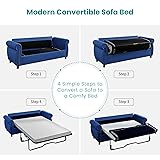 【Linen Fabric】: Crafted from premium polyester linen fabric, this sofa bed combines aesthetic design with lasting durability. The soft, skin-friendly material is resistant to pilling, fading, and daily wear and tear, ensuring the sofa remains as good as new for years. The neutral blue tone complements any decor style, from modern minimalism to classic warm tones, making it a versatile focal point in your living room. 【2-in-1 Sofa Bed】: The pull out sofa bed effortlessly transforms from a stylish, casual sofa into a comfortable guest bed. With its smooth, easy-to-pull mechanism, you can quickly convert it with minimal effort. The included 3.2-inch high-density memory foam mattress ensures perfect support and a restful sleep experience, making it an ideal choice for entertaining friends or hosting guests. 【Memory Foam Mattress】: Sleeping on the memory foam mattress of the pull out sofa bed is like sleeping on a cloud. This mattress is specially designed to eliminate pressure points and provide contouring support. The high-density memory foam conforms to the contours of your body, reducing tossing and turning, and ensuring a restorative, high-quality sleep. 【Elegant Nailhead Accents】: Enhance the style of your space with the exquisite details of the pull out sofa bed. The sleeper sofa features sleek tackhead armrests with polished metal accents, adding a touch of luxury to its clean, minimalist silhouette. Paired with the soft linen fabric, these details create a balanced and elegant visual effect that fits perfectly into fashionable apartments, cozy family living rooms, or professional office spaces. 【Sturdy and Durable Construction】: The pull out sofa bed is built with a sturdy wooden frame, heavy-duty iron backrests, and stable plastic legs, creating a solid foundation. Whether you are sitting, reclining, or sleeping, the frame can withstand shaking or sagging, ensuring structural integrity. Reinforced corners and seams prevent damage, making this sofa bed an ideal choice for families.