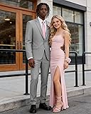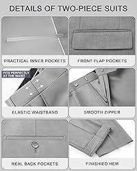 COMPLETE 2 PIECE MEN SUIT: Elevate your wardrobe instantly with this classic suit set, including a one-button jacket, matching flat-front pants, and a formal dress tie for a elegant, head-to-toe look right out of the box. MODERN SLIM FIT & COMFORT: Features a contemporary slim-fit cut crafted with 3D draping technique. It offers a sleek, figure-enhancing silhouette that looks sharp, while the balanced design ensures all-day comfort for moving, sitting, or dancing at any event. PREMIUM POLY-RAYON FABRIC: Expertly tailored from a durable blend of 80% polyester and 20% rayon. This fabric provides a smooth, luxurious feel, excellent drape for a structured look, and wrinkle-resistant ease for maintaining a crisp appearance from morning until night. VERSATILE FOR ANY OCCASION: Available in colors including black, light/dark grey, navy blue, and khaki. Perfectly suited for weddings, business meetings, proms, graduations, parties, or office wear. It's an ideal gift for fathers, brothers, groomsmen, or anyone seeking a confident, stylish upgrade. EASY SIZING & CARE: For the best fit, please check our detailed size chart based on your chest and waist measurements. To preserve its sharp look, we recommend dry cleaning. Hang the tuxedo when not in use to maintain its perfect shape effortlessly.