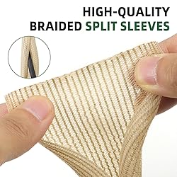 SIZE AND COLOR:Diameter: 1/8", 5/16", 1/2", 3/4", 1", 1.26"(3mm, 8mm, 13mm, 19mm, 25mm, 32mm); Length: 10ft, 25ft; color:black, grey, orange, black and red, white Long enough length and different sizes of wire loom can meet your needs, while our wire cable organizer can be cut arbitrarily to meet your cable management needs. SPLIT DESIGN: The cable sleeve features a split design, allowing you to quickly and easily insert and disconnect your wires without disconnecting them, saving time while protecting them from dust and damage. HIGH QUALITY MATERIALS: The cable sleeve is made of high-quality PET(Polyethylene terephthalate)material. At the same time, the wire management design encrypts wear resistance, creating a more discreet and wear-resistant protection for the wire harness. CORD PROTECTORS FROM PETS NO CHEW: Our insulated braided cable protector has strong abrasion resistance, if you have pets such as cats, dogs, rabbits, etc., you can install our rope sleeve on the wire, which can prevent curious cats or pets from chewing on the wire. MULTIPLE APPLICATIONS: Our cord sleeve ensures that wires stay tidy and reduces clutter and tripping hazards, making them ideal for desks, TVs, gaming setups, routers, and car wiring. Ideal for organizing and protecting cables in home, office, or industrial applications.