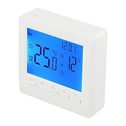 - Features: *The thermostat of the gas boiler adopts a liquid for Crystal digital display screen. Powered by two 1.5 V batteries. Used to control the start or stop of the boiler to regulate temperature. The thermostat detects room temperature, and when the actual room temperature is lower than the set temperature, the thermostat controls the boiler to start working. Then, when the actual room temperature is higher than the set temperature, the thermostat controls the boiler to stop working. *Convenient installation on a wall or standing in a certain place; *Powered by a 1.5V battery, it can be placed anywhere you want; *Can be programmed for 5+2 weeks; *Children's locks to avoid accidental ; *Antifreeze function. *Please make sure that a professional person installs your thermostat. *There is a protective film on the screen. Please tear them off if you want to use them. Specifications: *Material: Plastic+Metal *Color: As Pictures Show *Size: 86*86*28mmApprox.) *Voltage: Two 1.5V batteries *Power consumption:<170UW *Current load:3A *Temperature adjustment range:5-90℃ *Switching difference:±1℃ *Ambient temperature:-5-50℃ *Protective housing:IP20 *Non-flammable housing material:PC, V-0 *Sensor: built-in sensor *Application:Underfloor heating Package Contents: 1 X Thermostat for 2 x Fastening screws 1 x English lessons