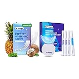 Natural Daily Whitening + Deep Brightening: Includes both PAP natural whitening strips and an advanced LED whitening kit, allowing you to gently brighten daily while accelerating deeper whitening when needed. Enamel Strengthening & Sensitivity Support: The PAP strips feature hydroxyapatite and coconut oil to protect and remineralize enamel, while potassium nitrate keeps whitening comfortable for sensitive teeth. Fast, Effective LED Whitening Technology: The LED kit uses 35% carbamide peroxide and blue light activation to speed up stain removal from coffee, tea, wine, and smoking—delivering visibly whiter teeth in days. Safe, Comfortable Fit & Daily Ease: The contoured non-slip whitening strips stay securely in place for even coverage, while the LED kit features an auto-timer and ergonomic design for effortless use. Long-Lasting, Confident Results: Use PAP strips for ongoing maintenance and LED sessions for faster shade improvement. Together, the system supports a naturally bright, healthy-looking smile—without irritation.