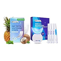 - Achieve your brightest smile with a complete two-step whitening system designed for both gentle daily maintenance and fast, visible results. The PAP Natural Whitening Strips use a peroxide-free formula enriched with bromelain and hydroxyapatite to lift surface stains while strengthening enamel and soothing sensitivity. For deeper whitening, the 35% carbamide peroxide LED Kit accelerates stain removal using advanced blue LED technology, delivering noticeable brightness in just minutes. Together, this bundle provides a safe, effective, and customizable whitening routine—so you can brighten confidently, comfortably, and on your schedule.