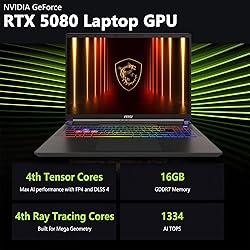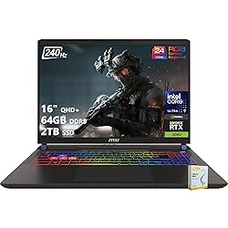 【Powerful Storage】: 64GB DDR5 SDRAM Memory, 2TB Solid State Drive 【MSI Vector Laptop Ultra 9】: Intel Core Ultra 9 275HX Processor (24 Cores, 36 MB Intel Smart Cache, 24 Threads, 5.4 GHz Max Turbo Frequency) 【Strong Graphics and Display】:16" QHD+ (2560x1600) 16:10 Wide View Angle IPS 240Hz Thin Bezel 100% DCI-P3; NVIDIA GeForce RTX 5080 Laptop GPU 16GB GDDR7 【External Ports and Slots】: 1x HDMI 2.1, 2x Thunderbolt 5 w/DP &PD1.4, 2x USB 3.2 Gen 2, 1x Audio Combo (1/8"), 1x RJ45, 1x SD Card Reader 【Operating System】: Windows 11 Home, 24-Zone RGB Gaming Keyboard with Copilot Key, Wi-Fi 6E + Bluetooth 5.3, IR FHD Camera w/shutter, Nahimic, Hi-Res Audio, Authorized DLCA Accessory