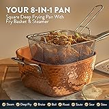 ELEGANT YET PRACTICAL: The Gotham Steel hammered collection is beautiful and makes a statement in every kitchen, yet nonstick, lightweight, scratch resistant and dishwasher safe! COMPLETE KITCHEN IN A BOX: Includes everything you need to completely outfit your kitchen and take cooking and baking to the next level, includes a full cookware set with frying pans, skillets, saucepans, stock pots with tempered glass lids, a deep frying and casserole pan with a steamer tray, fry basket and lid plus a complete PRO baking set with cookie sheet/jelly roll pan, loaf pan, muffin tin, square pan and a 5 Pc nylon cooking utensils set. ULTIMATE CERAMIC NONSTICK: The Gotham Steel nonstick cooking surface is coated three times and then reinforced with diamonds to deliver the ultimate food release. No seasoning or even oil or butter needed, makes for healthier eating, and provides for hassle free, 1-2-3 cleanup. EFFORTLESS CLEANUPS, DISHWASHER SAFE: Spend less time with cleanup! After all the cooking and prepping is done, place cookware in the dishwasher for quick and easy cleanup. STOVETOP/OVEN SAFE: Compatible with gas, electric, glass cooktops & oven safe up to a sizzling up to 500° Fahrenheit, lids included! METAL UTENSIL SAFE: The coating of the pan is infused with diamonds, the strongest material on earth which makes it durable enough to withstand metal utensils, spatulas, spoons, whisks and even electric beaters while delivering years of outstanding, nonstick use HEALTHY & NON-TOXIC: The Gotham Steel coating is composed of ceramic and reinforced with titanium, ensuring this frying pan is free of PFOA, PFOS, lead & cadmium for an eco-friendly, healthy experience for your entire family. EVEN HEATING THROUGHOUT: Stamped from a single sheet of aluminum in a heavy press ensures even heat conductivity and distribution all around with no dead zones or hot spots CONTENTS: this set includes 8.5" fry pan, 10.25" skillet with tempered glass lid, 1.5-quart sauce pan with tempered glass lid, 2.5 quart sauce pan with lid, 5 quart stock pot with lid, stainless steel steamer rack, 9.5" square shallow pan, 9.5” deep square casserole pan with tempered glass lid, stainless steel frying basket, steamer insert, 12” x 17” XL cookie sheet, 9.5” x 9.5” square baking pan, loaf pan, 9.5” round baking pan, 12 cup standard sized muffin pan. 10 YEAR GUARANTEE – our cookware is built for years of use and backed by a 10-year limited guarantee