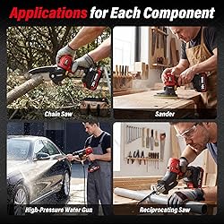 【10-in-1 Cordless Power Tool Combo】This versatile 20V power tool set features 10 interchangeable heads, including a chain saw, angle grinder, reciprocating saw, impact driver, circular saw, sander, leaf blower, high-pressure water gun, drill driver, and buffer. Ideal for cutting, grinding, sanding, cleaning, and more—perfect for DIY, home improvement, and yard work. 【Efficient Brushless Motor & Heat Dissipation】Equipped with a brushless motor and advanced heat dissipation, this power tool combo kits ensures optimal power output and extended motor life. The integrated cooling system minimizes heat buildup, preventing overheating during long tasks and ensuring stable performance for demanding jobs. 【Long-Lasting Power & Smart Status Display】Powered by two 20V 4.0Ah lithium-ion batteries, this power tool provides extended runtime for all your tasks. The built-in smart display shows real-time battery life, speed levels, and power feedback, ensuring minimal downtime and consistent performance throughout your DIY projects. 【Quick-Release System & Ergonomic Grip】The quick-release attachment system allows for tool-free head changes, while the ergonomic design ensures comfort and reduces hand fatigue. Perfect for extended sessions of sanding, cutting, grinding, or working in tight spaces and overhead. 【Convenient Storage & Easy Portability】This kit includes the main power unit, 10 interchangeable heads, two 20V 4.0Ah batteries, a charger, and essential accessories—all neatly organized in a durable storage case for easy portability. Perfect for home renovation, woodworking, auto repairs, gardening, and DIY projects.