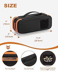 WIDY COMPATIBILITY: Trahzia multimeter case compatible with Klein* 80101/ ET310 AC circuit breaker finder, Fluke* 117/ 115/ 116/ 114/ 113/ 177/ 178/ 179/ 233/ 101/ 106/ 107/ F15B+/ F17B+/ F18B+ digital multimeter/ 325 clamp multimeter. *This product is unrelated to all brands mentioned. (Empty bag only, NOT includes multimeter and accessories) STURDY & PROTECTIVE: Constructed from hard EVA material, the circuit breaker finder bag provides superior protection against scratches, drops, and impacts, ensuring your tools stay safe in all conditions. (Whole bag dimensions 11.2 x 5 x 4 inches. ) 3-LAYER DESIGN: The main compartment features 2 elastic hook and loop fasteners to securely hold your clamp meter, preventing any accidental slips when opening. 2 mesh pockets for storing test leads, batteries, or small accessories. EXTRA STORAGE: The bottom compartment with a mesh pocket to organize a digital multimeter. The zippered center compartment offers additional space for tester pens, electrical outlet and more. EASY TO CARRY: The electrical tester case features a comfortable handle and dual-zipper design, making it easy to transport and access your equipment anytime, anywhere. Exterior magic tape loop for attaching your exclusive patches(NOT included).