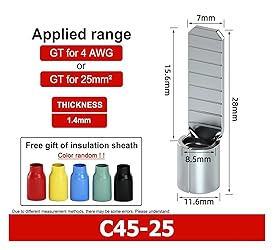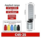 C45 crimping terminals designed specifically for safe electrical connections Compatible with wire gauges ranging from 16 to 2/0 AWG, suitable for various applications Needle shaped design ensures reliable and tight fit for conductivity Durable structure provides long-lasting performance Easy to install