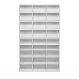 Pemberly Row Media Storage Tower Rack, 24 Adjustable Shelves, Composite Wood, White Finish, 7.09" D x 37.28" W x 60.47" H, Wall-Mountable CD/DVD/Blu-ray Organizer for Living Room or Media Room