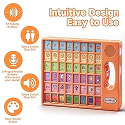 Eliminate Communication Frustration for Speech-Impaired Groups:For non-verbal kids/adults with autism, stroke survivors in rehab, patients with apraxia or aphasia, this AAC device is a communication game-changer. Equipped with 40 pre-installed picture-color coded buttons (more than most competitors) covering daily needs like "yes/no", "I’m thirsty" and "it’s too loud", it instantly bridges gaps and reduces anxiety from unexpressed demands—an essential autism talking aid for home and rehab centers.It's an autism toys to find and express what they feel, fast and with confidence. Dual Voice Modes, 8 Customizable Buttons & Exclusive Grip Handle:It features a boy/girl voice switch for relatable interaction, plus 8 programmable buttons to record personalized commands (e.g., dialects or family nicknames). The exclusive right-side grip handle ensures stable holding for kids with fine motor challenges and stroke patients with limb weakness—an unique advantage over standard AAC communication tools. Adjustable Volume & Travel-Friendly for Multi-Scenario Use:With stepless adjustable volume, it works clearly in noisy classrooms, rehab clinics or public places. The lightweight body, matching storage bag and ergonomic grip make it ideal for on-the-go speech therapy (requires 3 AAA batteries, not included)—a top choice for portable non-verbal communication aids. Wide Compatibility for Diverse Speech-Impaired Users:This non-verbal communication tool suits non-verbal autism children, stroke rehab patients, apraxia/ aphasia sufferers and those with congenital speech difficulties. It’s a convenient alternative to PEC cards for autism, non-verbal communication boards and speech therapy cards, trusted by speech therapists and rehab specialists. Boost Confidence & Enjoy Reliable After-Sales Support:The picture-color coded buttons encourage active language response and skill building, helping non-verbal individuals and stroke patients regain communication confidence to connect with loved ones.