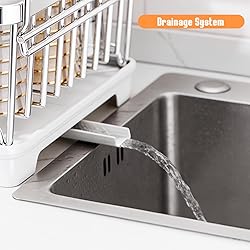 Large Capacity with Compact Countertop Size: This dish drying rack measures 15.75" L x 9.84" W x 7.28" H (40 x 25 x 18.5 cm), offering generous space for plates, bowls, cups, and utensils while fitting neatly on most kitchen counters. Durable Stainless Steel Construction: Built with high-quality stainless steel, this countertop dish rack provides strong support and long-lasting durability. Ideal for everyday kitchen use, even in wet environments. Efficient Drainage System with Removable Drainboard: Includes a matching drainboard sized 15.75" x 9.72" (40 x 24.7 cm) that channels water directly into the sink, helping keep your countertop dry and clean. Space-Saving Design with Wooden Handles: The compact footprint makes this dish rack perfect for apartments, small kitchens, or limited counter space. Smooth wooden handles add a modern look and make it easy to move when needed. Easy Assembly & Simple Cleaning: Designed for hassle-free setup with removable components for easy cleaning. This stainless steel dish drying rack helps keep your kitchen organized with minimal effort.