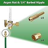 - This 4-pack argon nut and nipple set is designed for MIG and TIG welding applications using inert shielding gases. Each set includes a CGA-032 B-size argon nut (5/8"-18 RH male) and a 1/4" hose barb nipple, allowing secure connection between regulators, flowmeters, and gas hoses. Manufactured from solid brass and rated up to 200 PSI, these fittings provide dependable performance in professional welding environments. Ideal for shops that assemble multiple hoses or need spare fittings on hand.