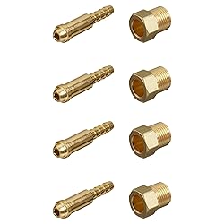 4 Complete Argon Fitting Sets – Includes 4 argon nuts and 4 hose barb nipples, providing four complete nut & nipple sets for MIG and TIG welding setups. Standard B Size Connection – Nuts feature CGA-032 (5/8"-18 RH male) threads commonly used for argon and inert gas connections. 1/4" Hose Barb Nipples – Nipples measure 2-7/32" long and are designed for 1/4" ID gas hose with B-size compatibility. Solid Brass Construction – Made from durable brass for corrosion resistance, reliable sealing, and long service life. 200 PSI Pressure Rating – Suitable for inert gas delivery in MIG and TIG welding applications.