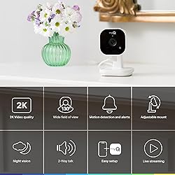 - Customized Communication: Take control of how and when you're notified. The myQ Indoor Camera Gen 2 gives you a clear view inside your home with stunning 2K resolution, a 130° wide-angle lens, and enhanced night vision. Whether it’s the front door, kitchen, or living room, you’ll always know your home is safe and secure. Get real-time alerts when motion is detected, talk and listen through the camera with 2-way audio, and use the myQ app to monitor your home from anywhere. Quick Bluetooth setup, plus a versatile stand that fits your space—no tools or drilling required. Tailor notifications to focus only on the moments that matter most.
