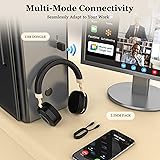 【Portable Retractable Mic & 180° Rotating Ear Cup】Our wireless headphones for work deliver pro-grade calls and sleek portability. The retractable mic neatly retracts when idle, maintaining a streamlined profile. Simply extend and adjust its angle for crisp conversations. 180° rotating ear cups fold flat for compact storage while keeping a professional look. (For optimal call quality, adjust the mic close to your mouth during use). 【3-in-1 Connection Mode & Wide Compatibility】Designed for ultimate convenience, our computer headset features advanced tri-connectivity (USB dongle, Bluetooth 5.3, wired), ensuring exceptional operational flexibility. It is compatible with Zoom, Microsoft Teams, Google Meet, and many other mainstream communication platforms, and can be seamlessly integrated into your workflow. 【AI Noise Cancelling & Mute Function】Earby wireless headset with mic for work features cutting-edge AI noise cancellation that blocks 99% of background noise, delivering crystal-clear conversations in noisy offices or cafes. A convenient one-touch mute button lets you instantly pause calls or consult colleagues. Eliminate interruptions and maintain a professional image. 【Dual Connection & Immersive Stereo Sound】The wireless call center headset can boost your efficiency with the ease of connecting two devices at once. Effortlessly transition between computer meetings and incoming phone calls. PC headset delivers incredible listening clarity. Not only does it provide clear calls, but it also allows you to enjoy the stunning effects of music and videos during your leisure moments. 【Enduring Comfort & Extended Power】Our work headset with mic provides an comfortable wearing experience, even during extended use.The breathable earmuffs ensure all-day comfort, and the adjustable headband fits securely on your head without slipping. It only takes 2 hours to fully charge, and then you can enjoy up to 35 hours of talk time or 40 hours of music playback. This makes it an excellent choice for long workdays.