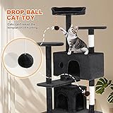 FDW Cat Tree 54in Cat Tower Multi-Level Durable Cat Scratching Post & Cozy Fun Cat Jumping Platform Space Saving Cat Condo Pet Play House for Indoor Cats,Grey