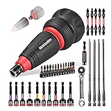 Geinxurn 35Pieces Impact Magnetic Screwdriver Set Include Stubby 2in1 Rachet Screwdriver Handle, Dual End Ratchet Socket Wrench, Bit Holder and Nut Driver for Repair & Outdoor Work