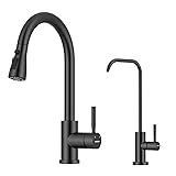 - WEWE Kitchen Faucets with Pull Down Sprayer, Stainless Steel Single Handle 1 Hole for Family Kitchen with WEWE Drinking Water Faucet, Matte Black