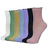 【 Premium Material, Easy Comfort 】: Material blend 80% Cotton, 15% Polyester, 5% Spandex for breathable soft feel, reinforced toe heel, these cute ruffle socks for women are stretchy, breathable, and exceptionally soft to the touch. Designed for all-day comfort, these breathable slouch socks keep feet warm and dry with moisture-wicking properties, making them perfect for everyday wear 【 Multiple Color Styles, Effortless Matching 】: 7 different cute colors in pack, these frilly loafer socks are so convenient for women pair effortlessly with various shoe types—boots, loafers, sneakers, flats—and clothing items like jeans, long skirts, short skirts, sweatpants, and sweaters. Perfect for creating chic, coordinated outfits 【 Versatile Wear, Multiple Styles 】: These stylish white ruffle socks offer several wearing options: wear them pulled up straight, scrunched down, or with the cuff turned over for a Mary Jane sock effect. Each style complements different clothing choices, making them suitable for casual, daily, or dressy occasions 【 Size 5-9 in 7 Pack 】 : Pack contents 7 pairs womens ruffle socks, fits US sizes 5-9, adult ruffle ankle sock styling options like cute crew sock, ankle ruffle sock, frilly socks for women in bright mixed color 【 Perfect Gift, Share the Love 】 : Beautifully packaged as a ready-to-gift set, these ruffle socks make a thoughtful and practical present for birthdays, holidays, or just because for any fashion-savvy woman