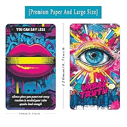 Modern Oracle Deck: Urban Truth Oracle is an 80-card modern oracle deck inspired by real emotions, real situations, and real relationships. It is designed to reflect everyday emotional truths and help users gain clarity through intuitive, honest messages Love Relationships: This oracle card deck focuses on love dynamics, situationships, friendships, emotional boundaries, and personal growth. Ideal for relationship readings, emotional reflection, and understanding patterns that show up in daily life Beginner Friendly: No guidebook included or required. Each card delivers clear themes and direct prompts, making it easy for beginners, casual readers, and intuitive users. Simply shuffle, draw, and reflect on the message 400GSM Premium Cards: Printed on thick 400GSM coated cardstock for durability and smooth handling. Designed for frequent shuffling and daily use without bending or wear, with vibrant artwork and a solid, comfortable feel Modern Gift Ready: Packaged in a visually striking box, this oracle deck is suitable for daily pulls, journaling, self-reflection, or sharing with friends. A thoughtful gift for spiritual beginners and anyone drawn to modern, honest intuitive tools