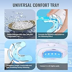 Professional Strength: Advanced teeth whitening formula with 35% Carbamide Peroxide gel delivers powerful and effective whitening results for a brighter, more confident smile. Powerful Blue LED Whitening Technology: The advanced LED light uses a non-invasive approach to accelerate stain breakdown, helping you achieve professional-level whitening at home. Gentle Formula: Specially designed with blue desensitizing gel for sensitive teeth, providing comfortable whitening experience without compromising on results. Achieve Up to 9 Shades Whiter in 7 Days: Effectively removes stains from coffee, smoking, wine, and more—delivering visible whitening results within a week. Travel Ready: Set of 4 compact whitening pens perfect for on-the-go touch-ups, maintaining your bright smile anywhere, anytime.