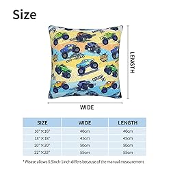 Perinsto Cute Monster Trucks Throw Pillow Covers Set of 2 Decorative Pillowcases Soft Cushion Covers for Sofa Couch Bed Home Decor, 18"X18"