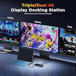 【12 IN 1 Versatile Surface Dock for Enhanced Productivity】Equipped with Surface Connection technology, this Surface docking station offers a range of connectivity options for all your peripherals with 2x HDMI*4K@30Hz, VGA*1080P@60Hz, 100Mbps RJ45 Ethernet port, 2x USB C data port, 2x USB A 3.0 Ports, SD/TF card slot, 3.5mm Headphone Jack Port, DC Power adapter, Surface dock With simple plug and play connectivity.professional setup on your office desk or in a conference room with just one MS Surface Dock. 【Unlock Triple Displays productivity with the microsoft surface docking station 】This microsoft docking station boasts 2x HDMI 4K@30Hz and VGA 1080P@60Hz ports, transforming your device into a robust workstation for mobile professionals, creative designers, and speech educators. The microsoft surface pro docking station supports plug-and-play setup on office desks or in conference rooms, elevating daily workflow efficiency in seconds. *Note: To use 3 external displays (HDMI/HDMI/VGA + Surface), you need to turn off your Surface’s screen. 【 Blazing-Fast Data Transfer Surface Docking Station】our microsoft docking station is engineered for creative professionals who can't afford bottlenecks. Two USB 3.0 ports and two USB-C ports deliver 5Gbps speeds for rapid file transfers from external SSDs and cameras, while the integrated SD/TF card slots support up to 104MB/s. This microsoft surface pro docking station eliminates the wait time when moving 4K footage, RAW photos, or large design files, making it the ultimate companion for photographers, video editors, and graphic designers. 【 Enjoy stable network & immersive audio with the Surface pro docking station】The new docking station for surface features a 10/100Mbps RJ45 Ethernet port for lag-free calls and a 3.5mm headphone jack for precise audio editing. Designed for hybrid work and classroom presentations, it ensures seamless connectivity whether you’re at your desk or in a meeting room. 【Surface Adapter Hub with 72W Power Supply 】This Surface dock delivering 72W power to charge your device and run peripherals simultaneously. A upgrade from 45W chargers, it meets the demands of busy mobile pros and remote workers without downtime. Minimalist modern design MS surface docking station pairs seamlessly with your Microsoft Surface laptop. 【Universal Compatibility Across the Entire Surface Ecosystem】This Surface docking station works flawlessly with Surface Pro 12/11/10/9/8/X/7/6/5/4/2017, Surface Laptop 7/6/5/4/3/2/1, Surface Laptop Go 3/2/1, Surface Go 4/3/2/1, and Surface Book 3/2/1.Professional office workers appreciate the minimalist design that reduces desk clutter while maximizing functionality. (Please connect the power supply port when using) 【worry-free support】 1x Surface Docking station, 1x 72W adapter, and 1x manual, with plug-and-play functionality right out of the box. Backed by a 12-month warranty, it’s a reliable choice for remote worker moving between home and office or conference rooms, this microsoft surface dock ensures plug-and-play connectivity without driver headaches.