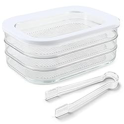 - 1.Three-tier deli meat and cheese fridge organizer: Each tier (8.86 inches x 6.3 inches x 1.1 inches) accommodates standard-sized deli packaging. These stackable deli meat organizers are perfect for storing sliced salami, turkey, ham, cheese, or roast beef! 2.Sealed for Fresh Cold Cuts and Luncheon Meat: Snap-on lids create a seal for your fridge's cold cuts storage containers, effectively preventing odors. Ideal for your fridge's luncheon meat, say goodbye to dry bacon and soggy cheese! 3.Clever Stacking Design: Stacks to a height of only 3.35 inches, saving 70% of fridge space! The transparent-framed lids act like windows, allowing you to instantly identify the contents, eliminating the need to rummage through your fridge for ham and cheese boxes. 4.KEEP FRESH: The refrigerator deli meat box has a lid, which is easy to open and close and has a good sealing effect. It can keep food fresher for longer and effectively prevent refrigerator odors. Transparent color allows you to see the food inside. 5.WIDE APPLICATION: Transparent food storage containers are suitable for various deli meats such as beef, sausage, chicken, ham, bacon, etc., and can be stacked to help organize your refrigerator and make the interior tidy. Specification: Deli Meat Container Material: PET plastic Deli Meat Container Color: Transparent+white Deli Meat Container Size(LxWxH): About 22.5x16x8.5cm/8.86x6.3x3.35inch Each layer capacity: about 550ml/18.6oz Package includes: 1pc x Deli Meat Container 1pc x Food clip Note: 1. Due to the light and screen difference, the item's color may be slightly different from the pictures. 2. Please allow 1-2 cm differences due to manual measurement.