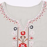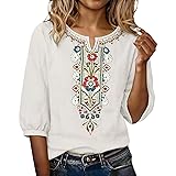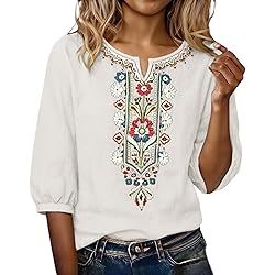 - Embroidered Tops for Women 3/4 Sleeve Boho Cotton Linen Shirts Plus Size Button Down Tunic Peasant Clothes