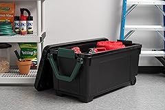 - Transform your storage and organization with this heavy-duty 42-gallon rolling storage trunk. Measuring 40.57" x 19.68" x 19.68", this robust plastic container combines durability with mobility, featuring built-in wheels and ergonomic handles for effortless transportation. The lockable lid design with secure latches ensures your belongings stay protected and contained, while the stackable construction maximizes vertical storage space. Perfect for garages, basements, or utility rooms, this versatile trunk excels at storing seasonal items, tools, sporting equipment, and household goods. The sleek black finish maintains a professional appearance, and the sturdy plastic construction stands up to daily use and heavy loads. The thoughtfully designed handles make lifting and maneuvering comfortable, while the wheeled base allows for smooth transportation even when fully loaded. Whether you're organizing your garage, preparing for a move, or storing seasonal decorations, this rolling storage trunk offers the perfect blend of capacity, mobility, and security.
