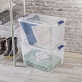 Clear Visibility & Easy Access: The clear base and clear lid deliver full visibility of stored contents from any angle, so you can locate and access items quickly without opening the lid, simplifying daily organization and home storage management. Secure Latching & Tight Seal: Features sturdy blue latches that firmly secure the lid to the base, keeping contents tightly sealed and protected from dust and debris in any storage area, ideal for multi-purpose home storage. Stackable & Space‑Saving Design: The recessed lid allows stable, neat stacking of multiple bins to optimize vertical storage space, creating a clutter‑free area while making the most of limited floor and shelf space in any room. Perfect Size & Interchangeable Lids: Exterior measures 24" L x 16" W x 13 7/8" H, offering a spacious interior for various household items. Lids are interchangeable with 32‑quart bins for flexible stacking and versatile space‑saving storage. Heavy‑Duty & Durable Construction: Constructed from heavy‑duty durable plastic for reliable daily use. Ideal for home, garage, closet, and office organization to store clothing, tools, seasonal decor, and essentials.
