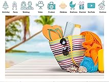 PEKRU 5x3ft Fabric Beach Bag Backdrop with Flip Flops and Sunscreen on Tropical Shore Background for Summer Vacation Party Decor for Events and Photo Props Wallpaper